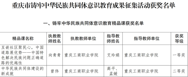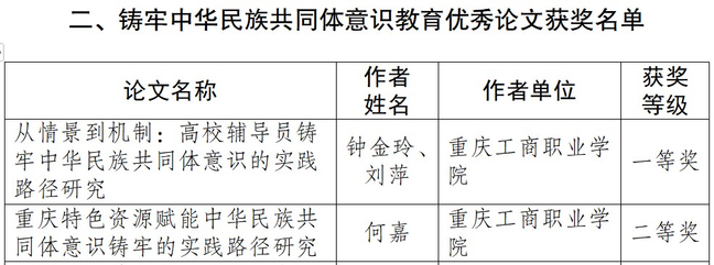 【简讯】重庆工商职业学院教师在铸牢中华民族共同体意识教育成果征集中喜获佳绩