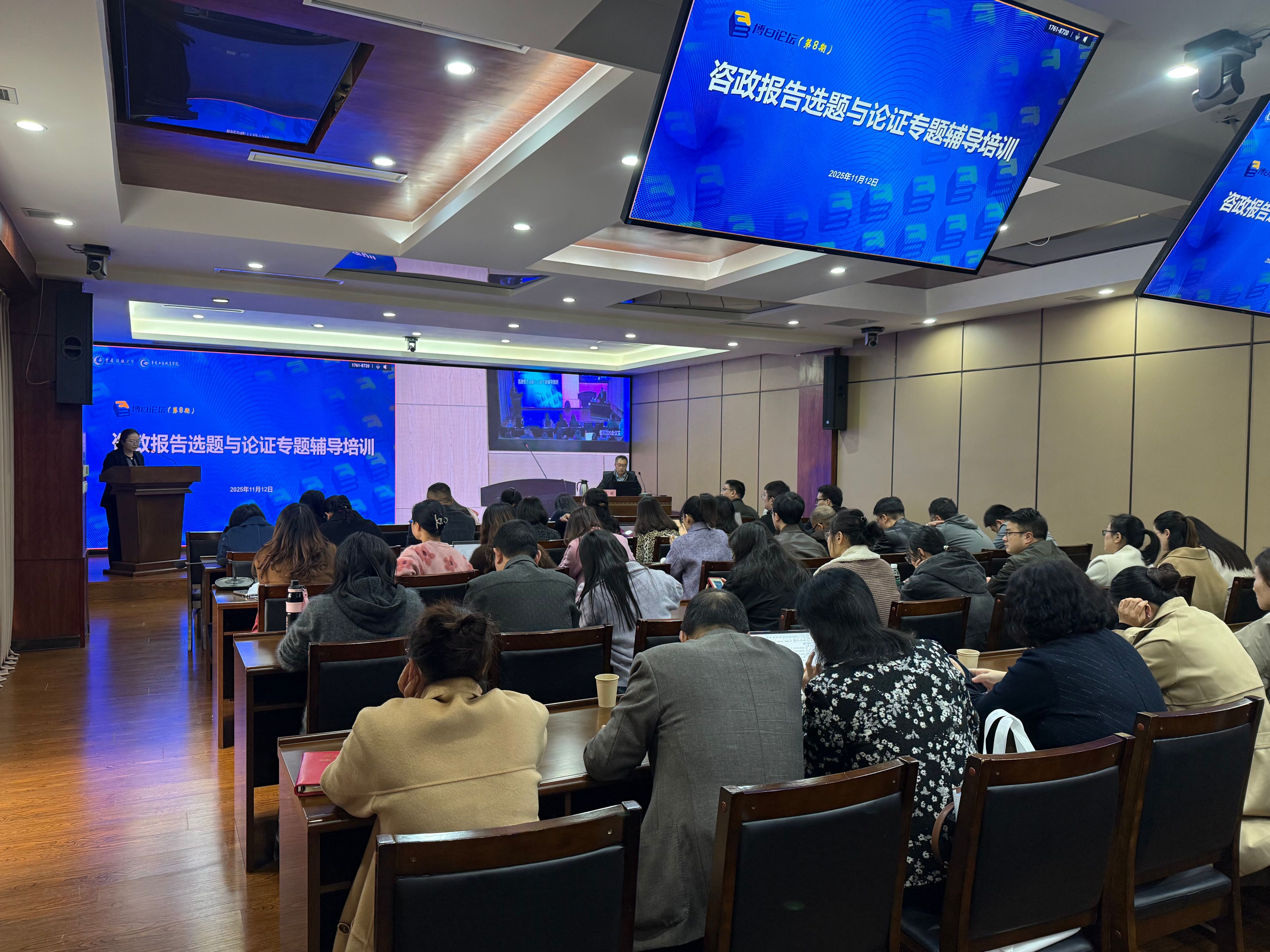 葛明以“咨政报告的选题与论证”为题,主要围绕咨政报告的内涵、选题技巧、论证结构、格式规范等方面进行了详细介绍,以丰富的实践经验、深厚的理论积淀、贴切的典型案例,进行了深入浅出的指导。现场交流环节,葛明结合自身经验,就与会教师提出的资政报告申报问题进行了详细解答和回应。