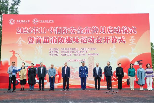 【供稿/党委保卫部】在第33个全国消防日来临之际,11月6日下午,学校在合川校区运动场举行消防安全宣传月启动仪式暨首届消防趣味运动会。