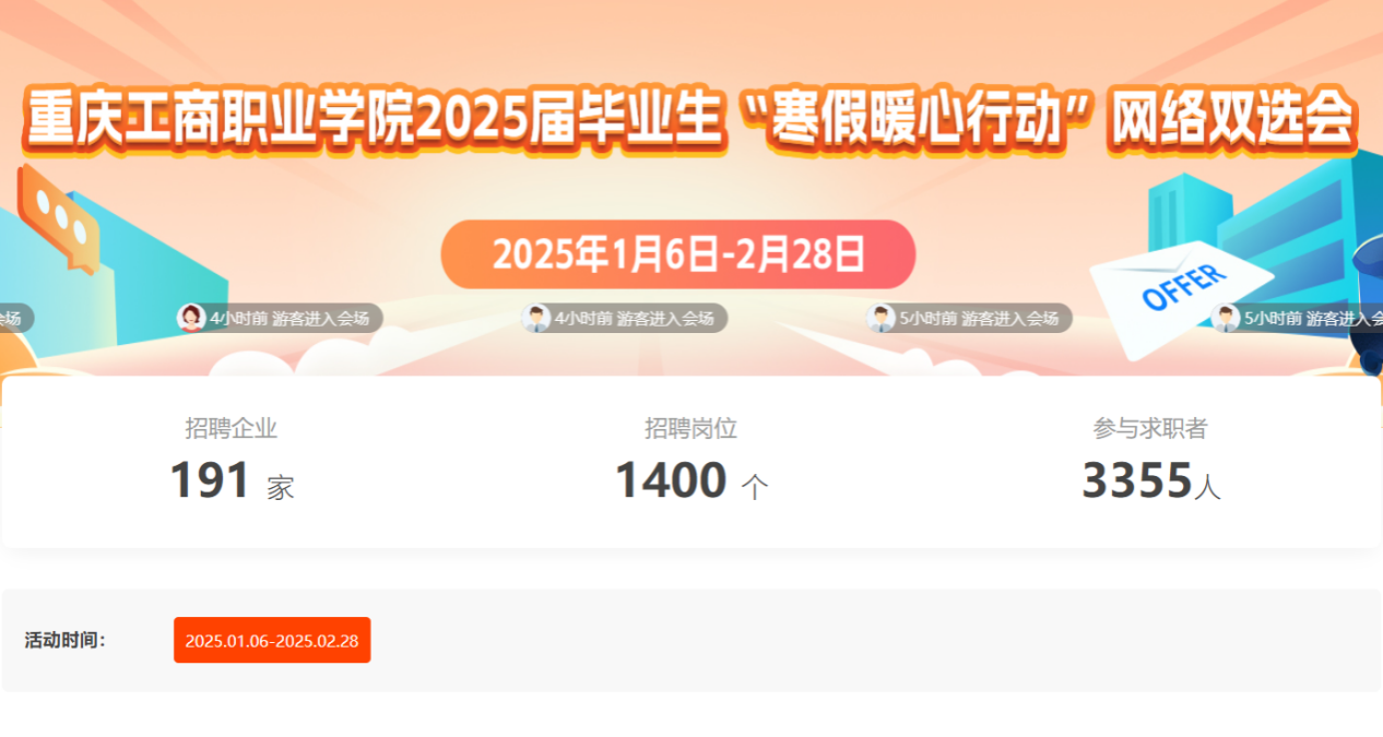 精细做好就业指导服务。就业处组织开展了2025届毕业生“寒假暖心促就业行动”网络双选会,邀请了191家单位参会,提供就业岗位1400个,累计吸引3300多名毕业生,达成就业意向640余份。同步推出“云课堂”“云指导”,开展政策解读、简历优化、模拟面试等专题培训12场,实现就业指导服务"不断线"。