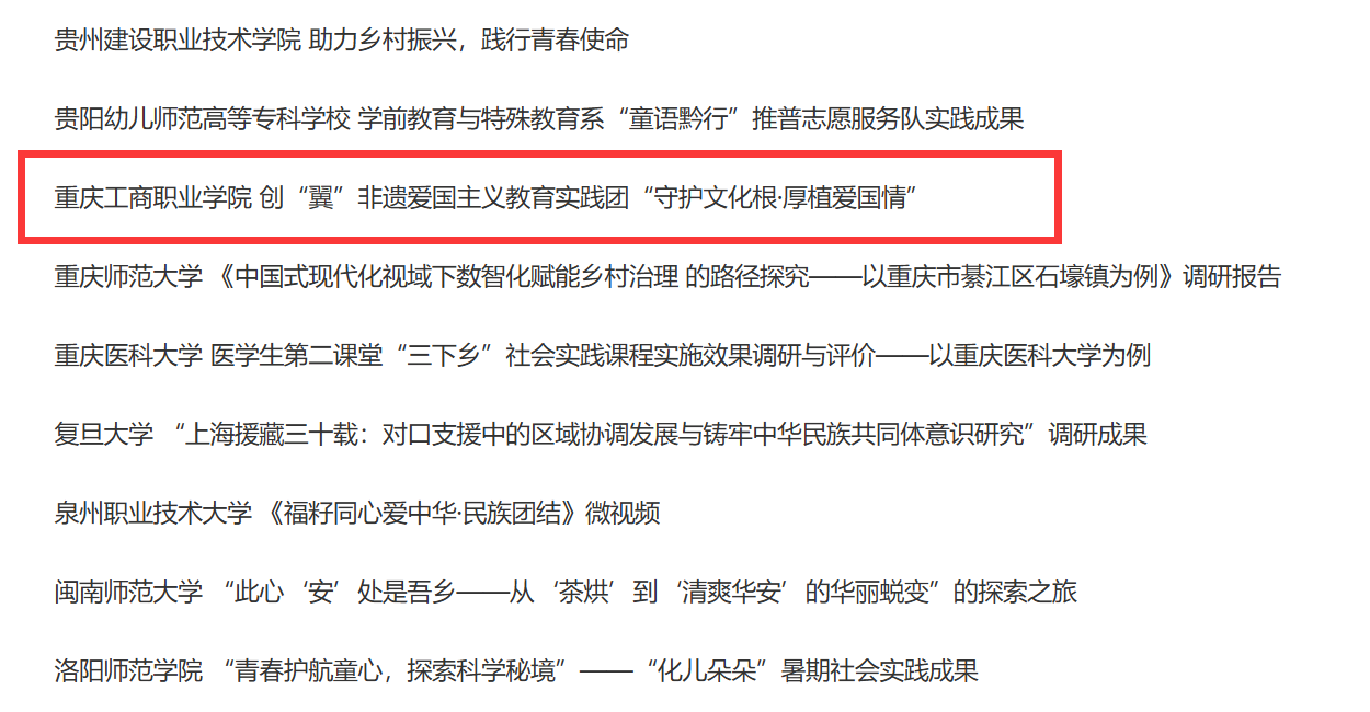 【供稿/城市建设工程学院】近日,由中国青年报主办的“2024年第十届全国大学生暑期实践展示活动”案例评选结果揭晓,经团队自荐、校方推荐、网络展示等环节,城市建设工程学院创“翼”非遗爱国主义教育实践团入选“全国大学生暑期实践成果案例”。据悉,此次全国共遴选100个暑期实践成果案例。