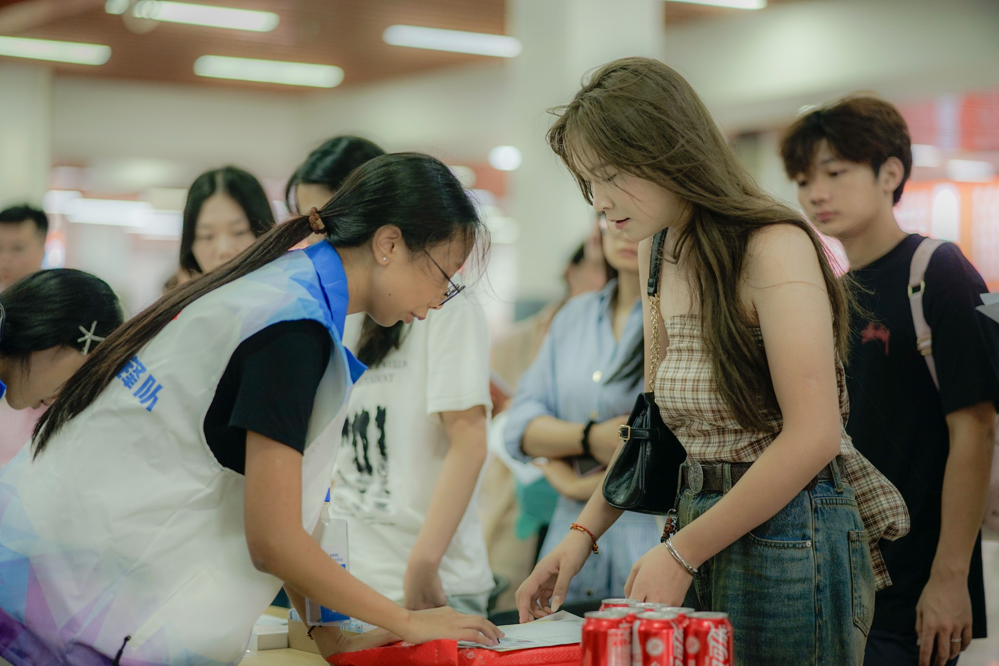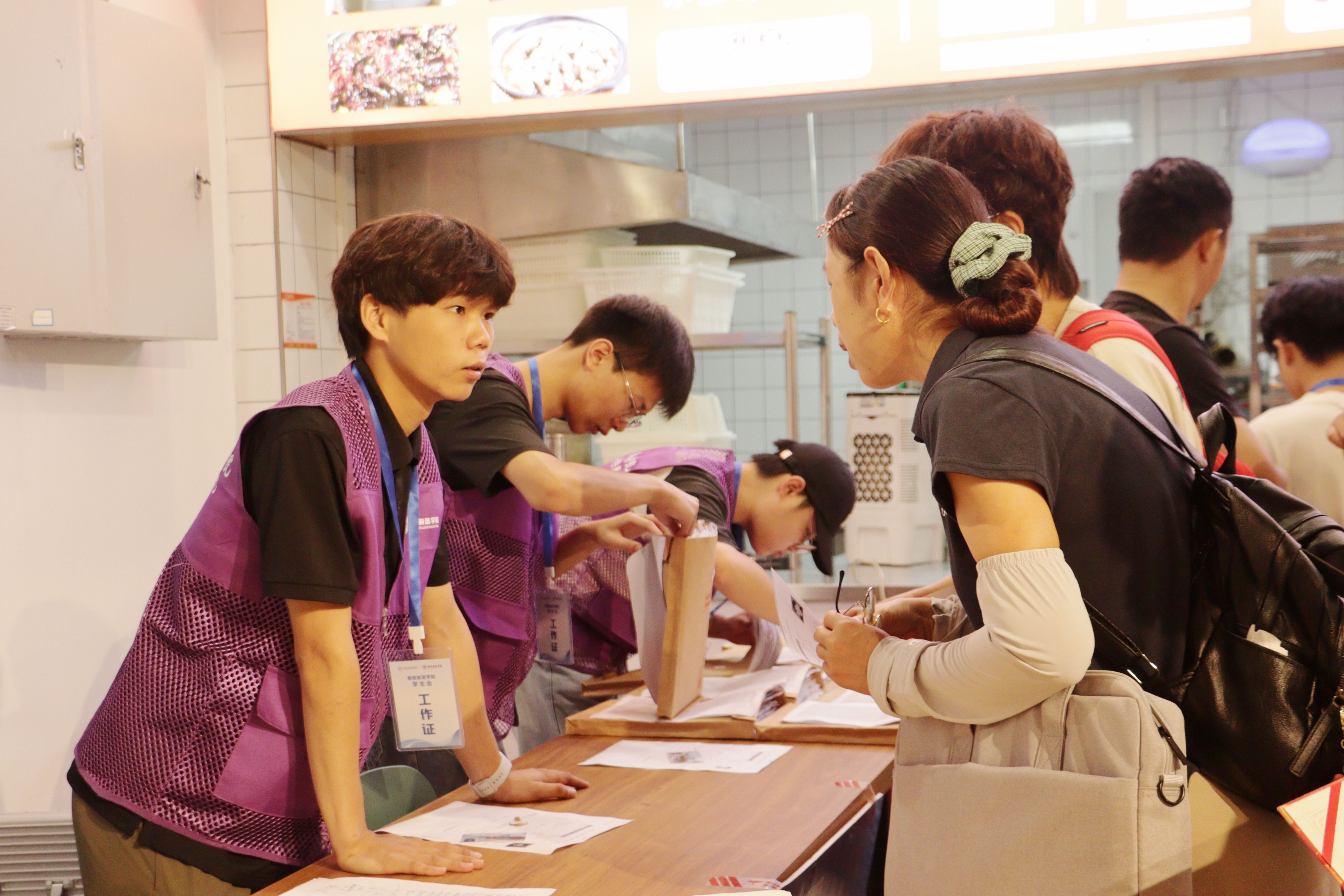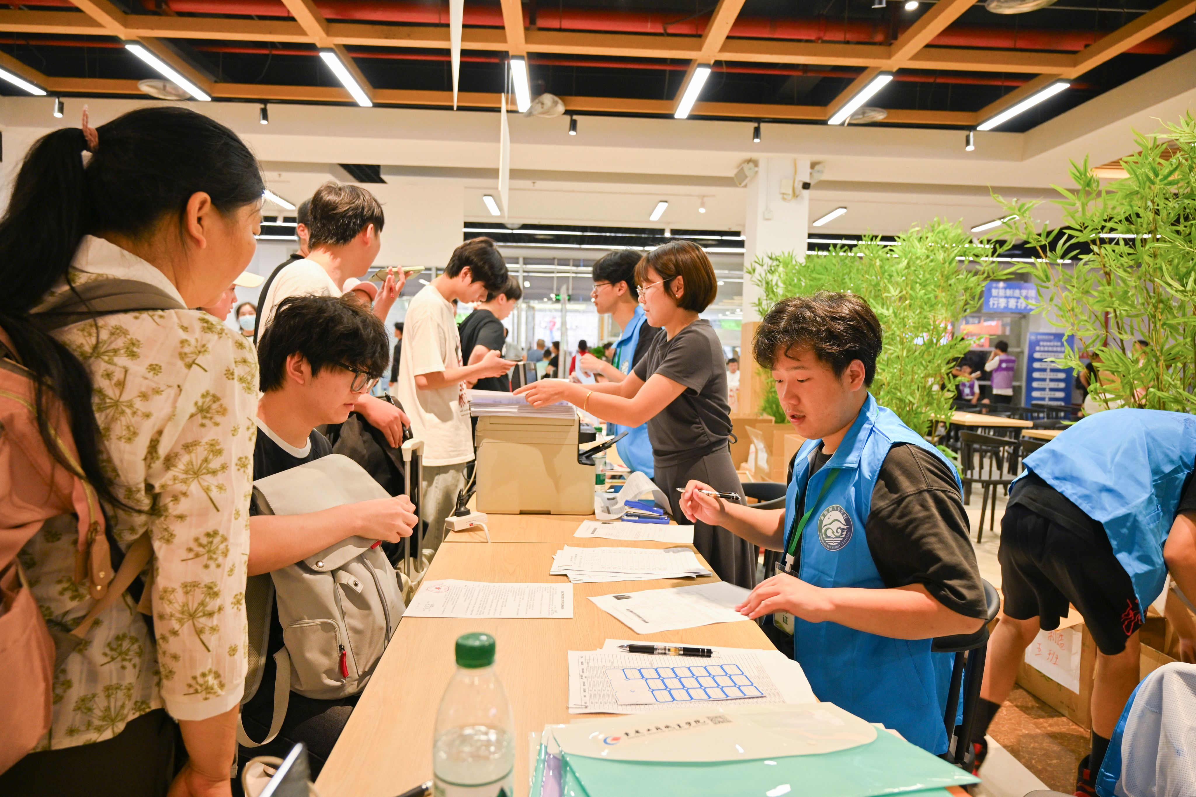 在学生活动中心和图书馆阅览大厅,各二级学院均设置了温馨且各具特色的迎新点位,并提供信息化、人性化、便捷化报到服务。新生们满怀憧憬,在学长学姐和老师们的细心指引下,办理入学手续、领取军训服装,眼中闪烁着对未来的期待。