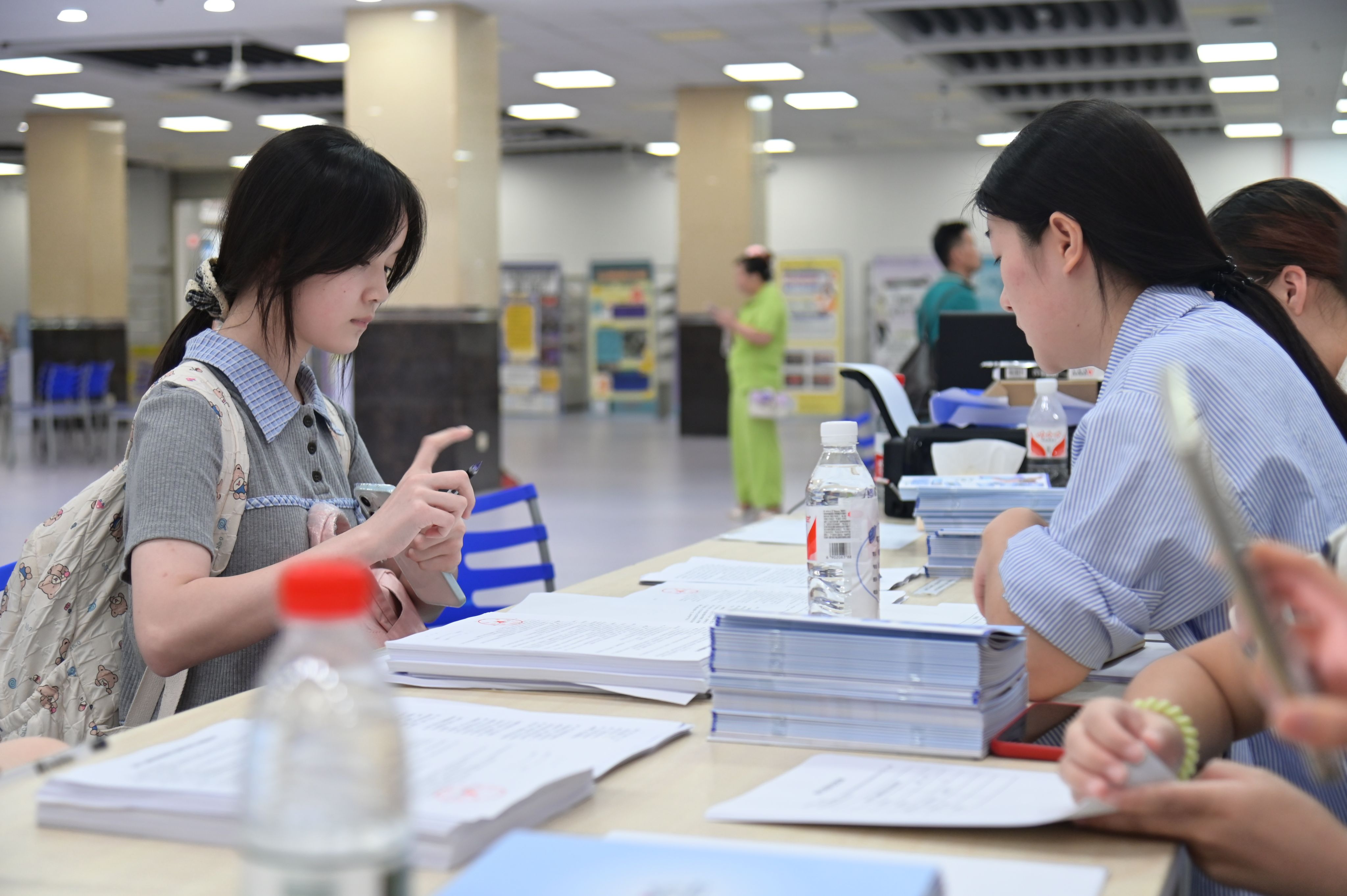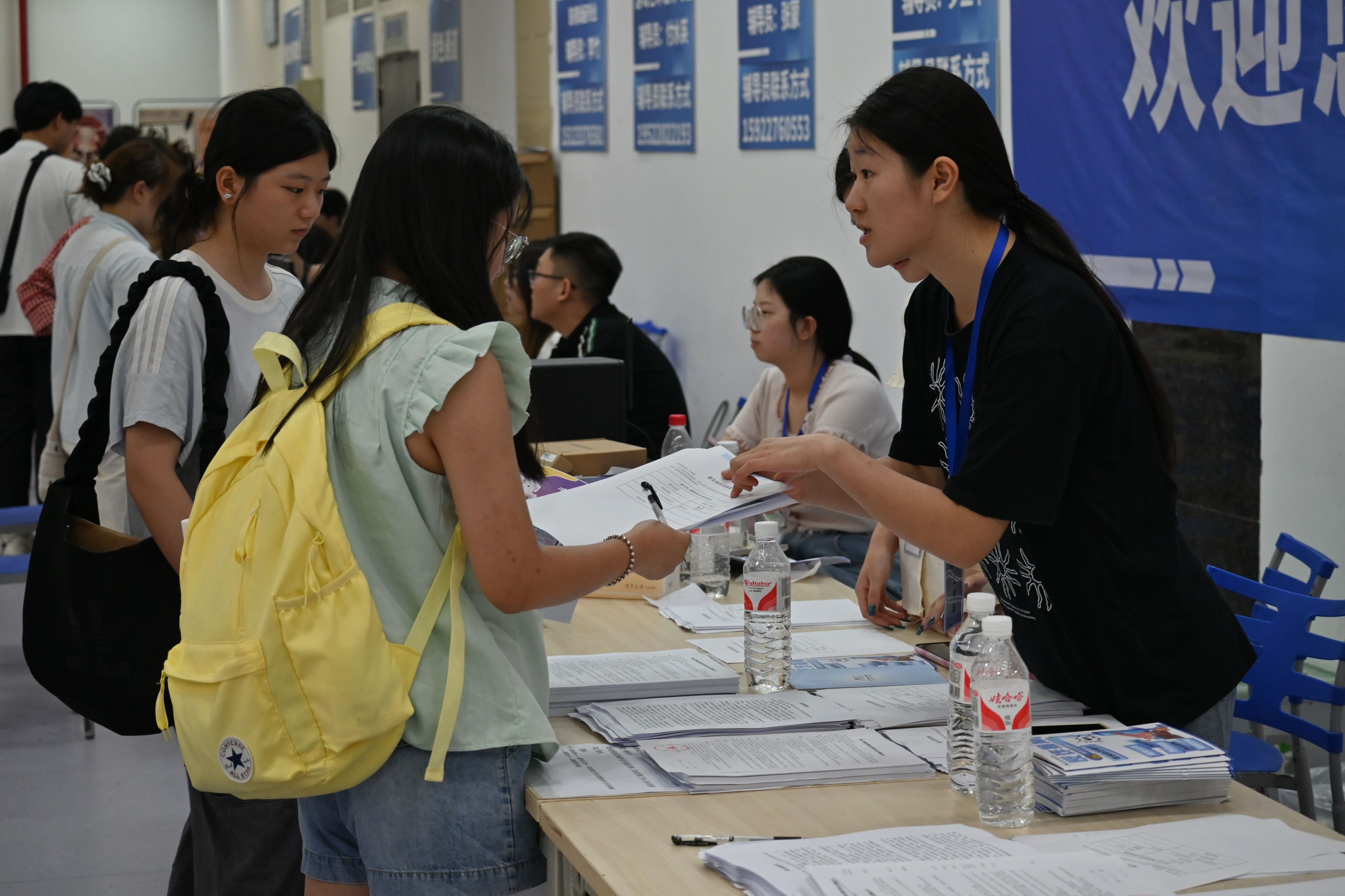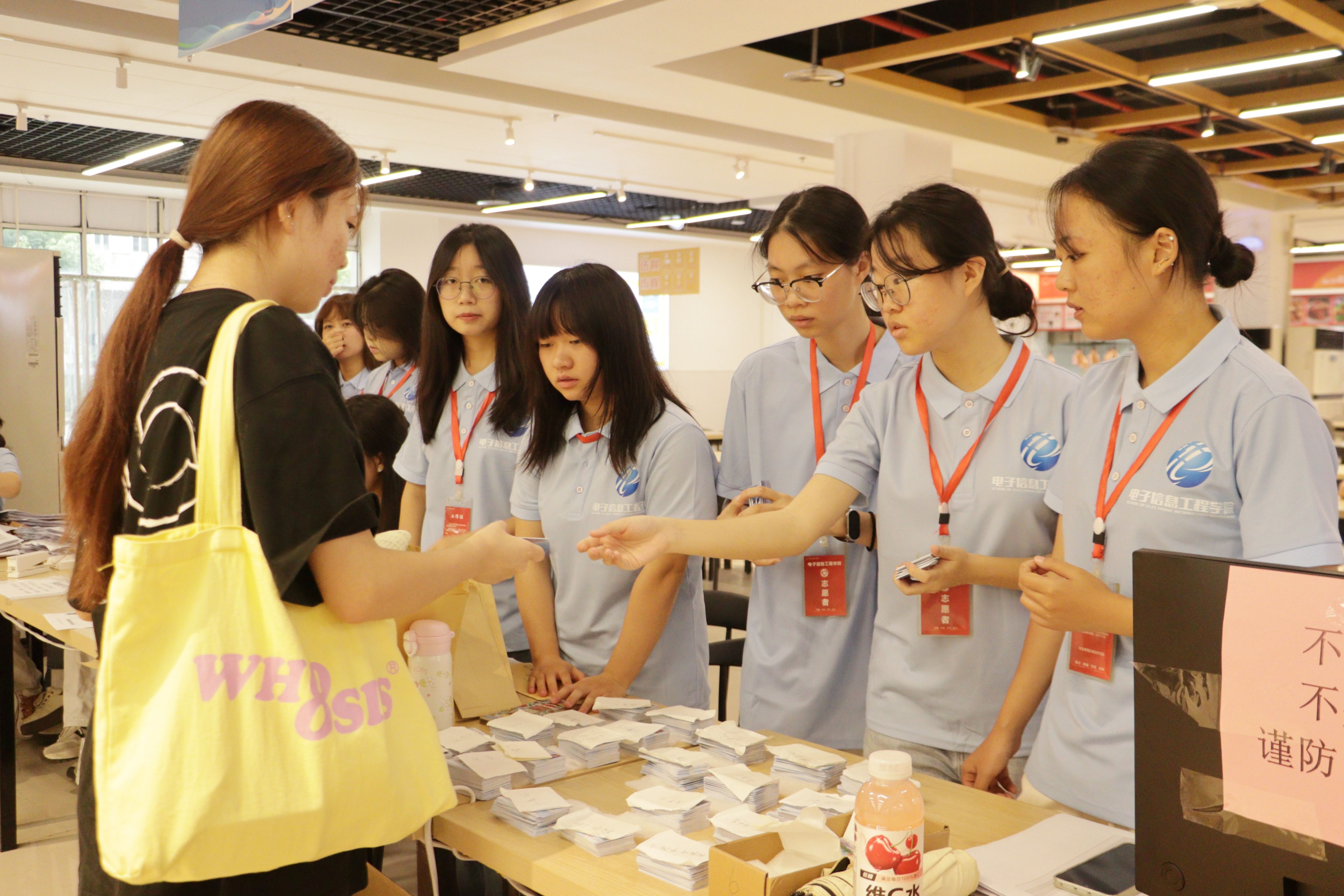 在学生活动中心和图书馆阅览大厅,各二级学院均设置了温馨且各具特色的迎新点位,并提供信息化、人性化、便捷化报到服务。新生们满怀憧憬,在学长学姐和老师们的细心指引下,办理入学手续、领取军训服装,眼中闪烁着对未来的期待。