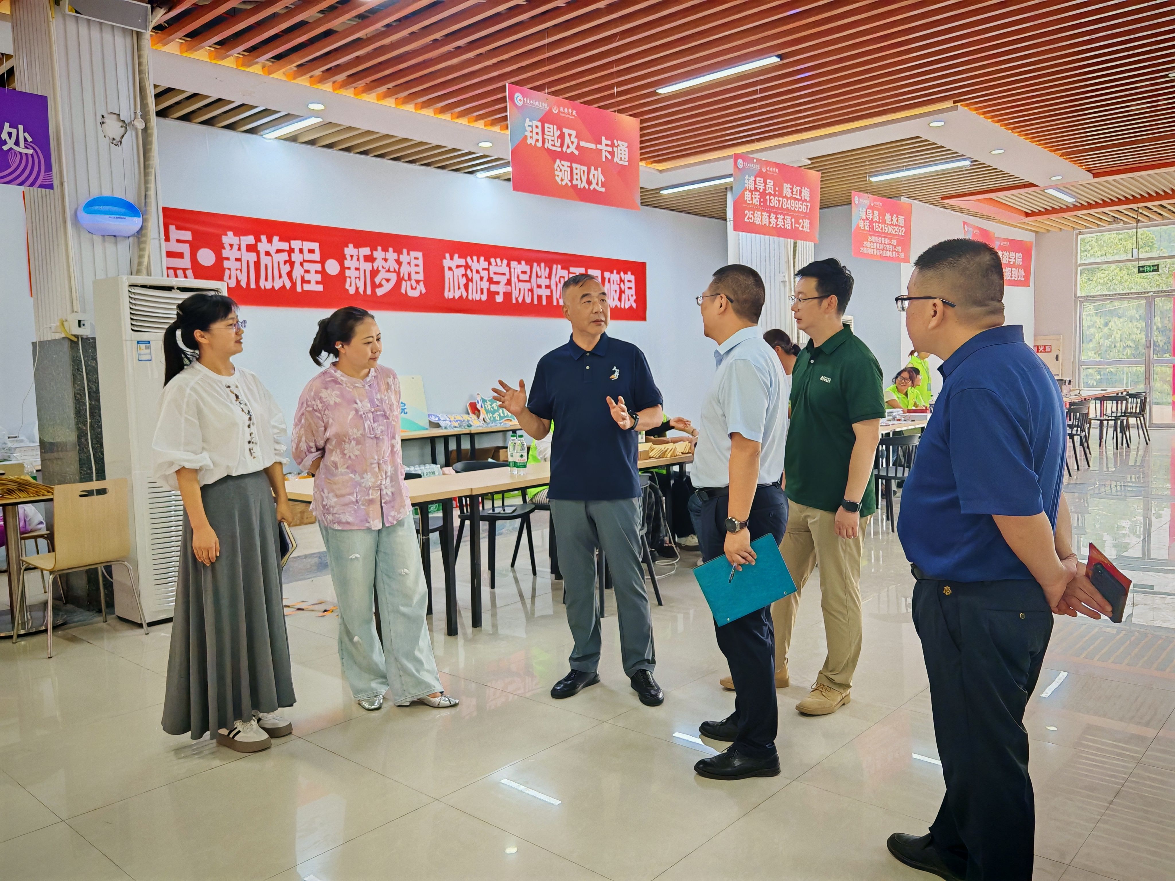 迎新期间,党委书记郭庆、校长田盈、副书记刘昌雄等校领导,先后走访了各学院迎新报到点、校门出入口等关键区域,详细了解了迎新注册流程,并与工作人员、现场志愿者深入交流,对大家冒雨坚守、贴心迎新的奉献精神给予肯定,鼓励大家在保障自身安全的前提下,持续以热情服务为新生筑牢入校暖心保障。