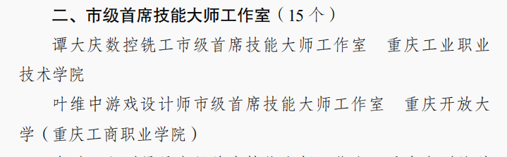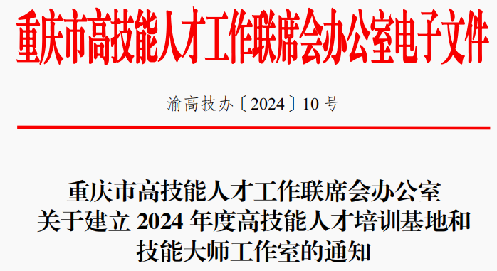 【供稿/党委教工部】近日,传来喜讯,我校叶维中技能大师工作室被重庆市高技能人才工作联席会办公室正式认定为市级首席技能大师工作室。