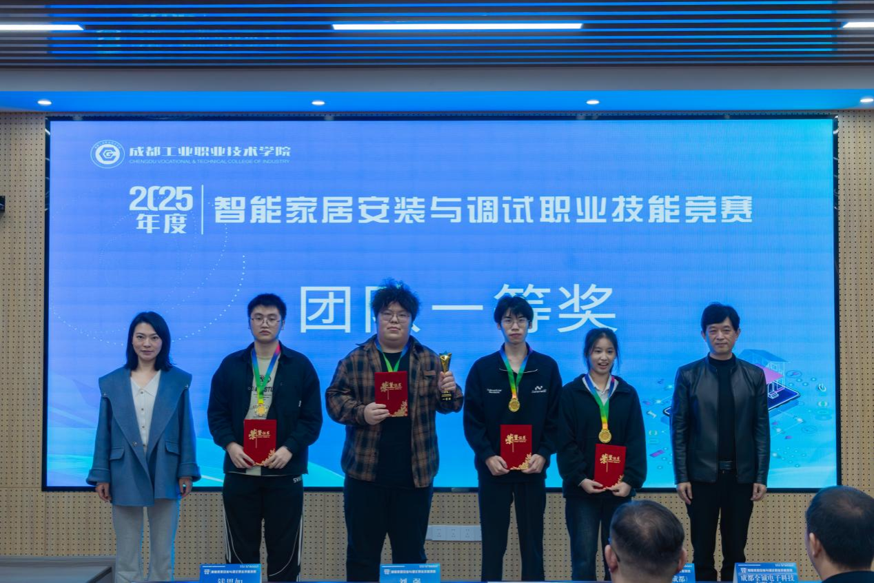 【供稿/设计学院】近日,2025年度智能家居安装与调试技能竞赛(高职组)在成都工业职业技术学院落下帷幕。设计学院2023级建筑室内设计专业学生彭娟、张奕铭,2023级建筑室内设计(中美合作)专业学生吴宇航,2024级建筑室内设计专业学生郭昊组成的参赛团队获团体一等奖(指导教师:李海清)。